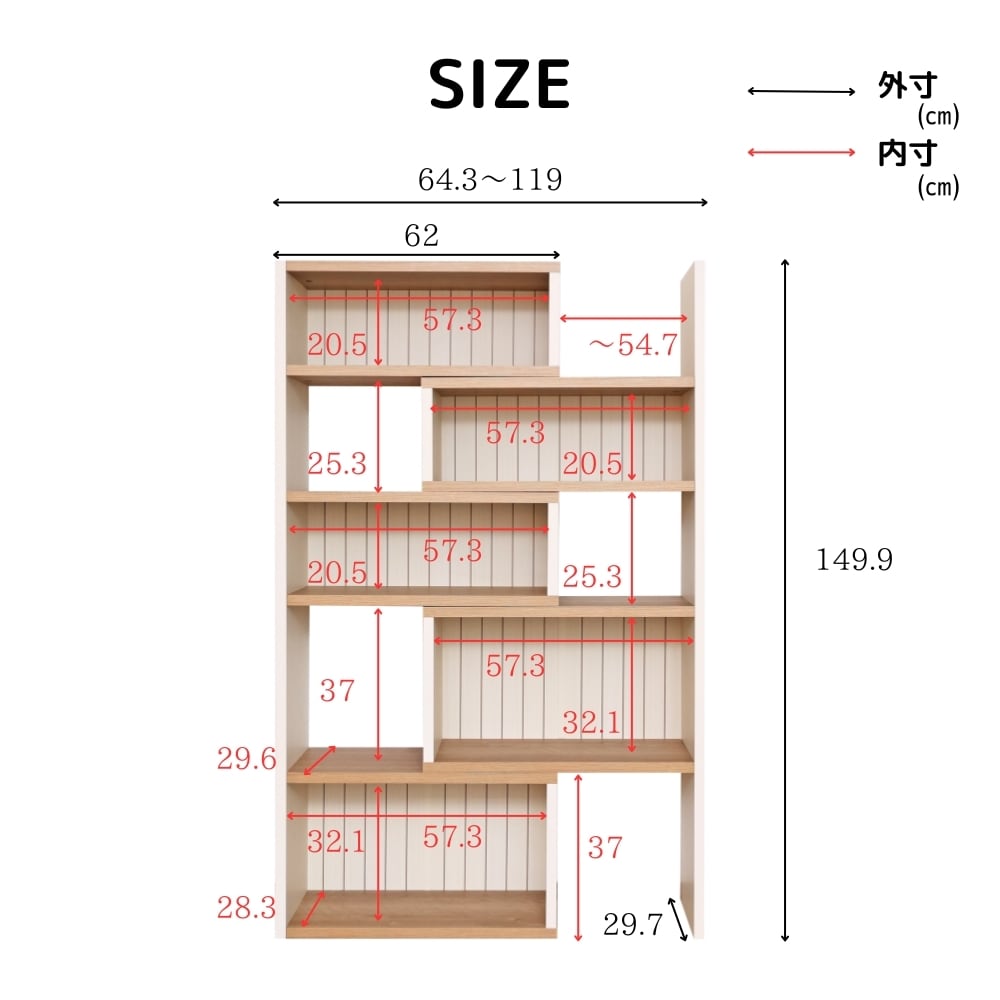 外寸:幅64.3~119×奥行29.7×高さ149.9(cm)