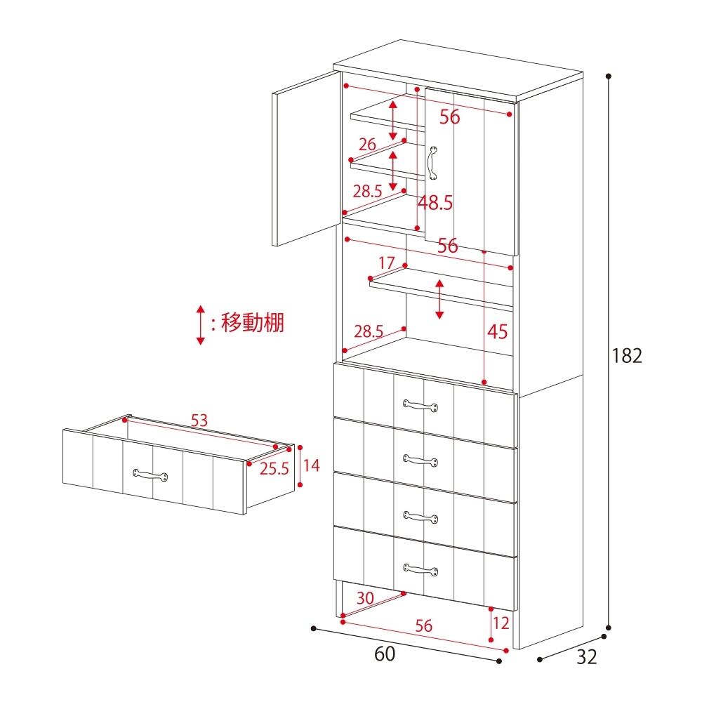外寸:幅60×奥行32×高さ182(cm)