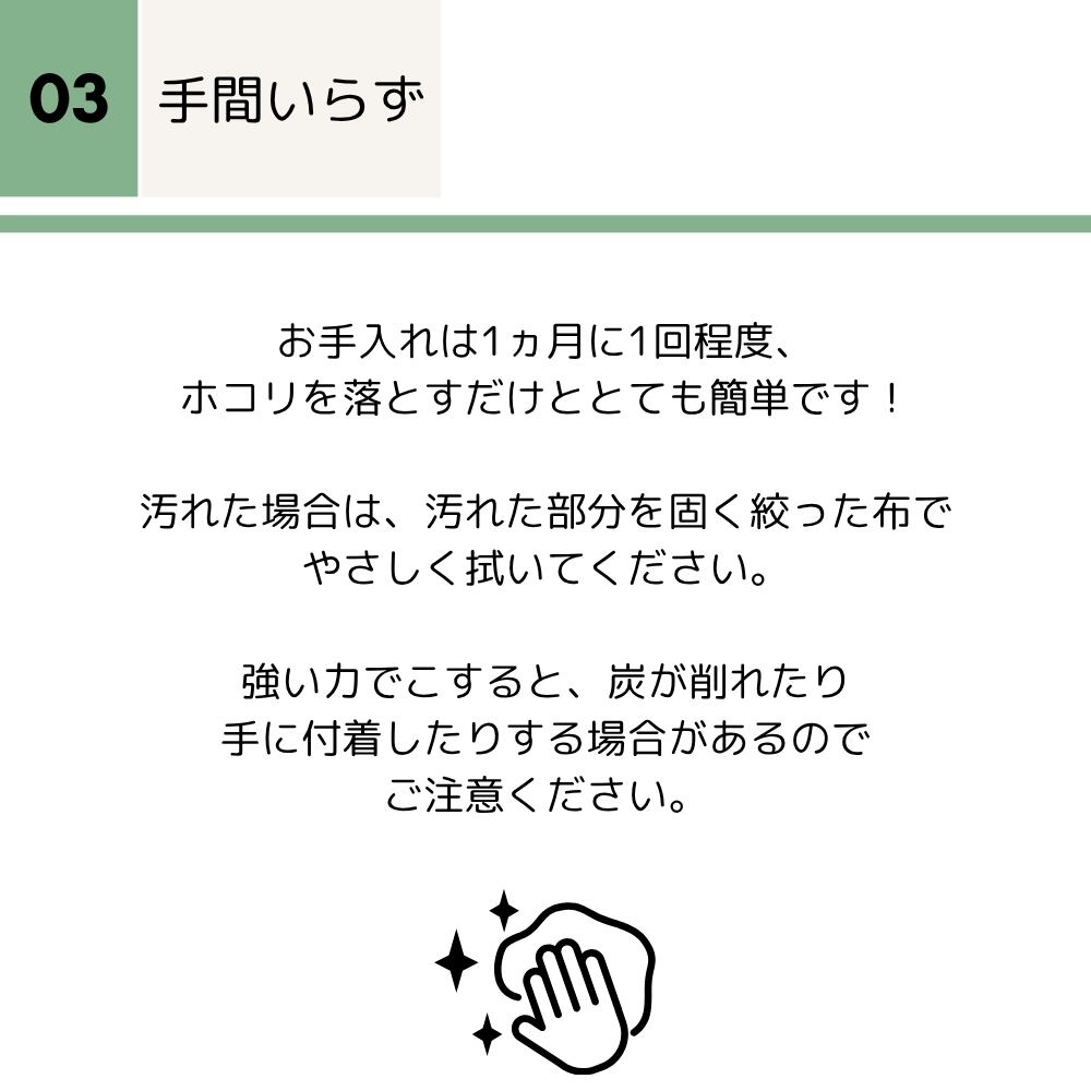 100%自然由来の炭を使用しているため、安心してお使いいただけます。