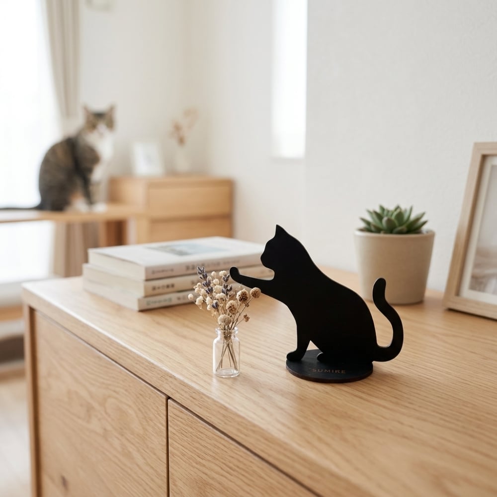 そっと手を伸ばす猫のシルエットが印象的な、消臭インテリア。